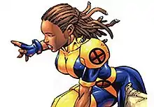 After meeting with problems with racism and both encouragement from Daredevil and an encounter with the villain Pyro, Reyes reluctantly joined the X-Men. Her first adventure involved saving Cyclops from a nanotech deep inside his body, which threatened to kill him, Reyes, other X-Men and obliterate anything in a three-mile radius. Despite having absolutely no medical supplies, she improvised in her successful attempt. For example, she had Storm use lightning to boil buckets of water. Afterwards, a dazed Cyclops offers her honorary X-Men status.[6] She has several adventures with the team, combating the Ru'tai and the Shadow King. She usually did not bother with a costume, wearing either the yellow and blue training uniform or, on one occasion as a joke by Beast, an old costume of Wasp's. It was while wearing Wasp's old uniform that Reyes became involved in a battle with the X-Men's frequent enemy, the N'Garai, interdimensional demons. Reyes mostly ran away, but was saved (and mocked) by the X-Man rookie Marrow. She was eventually sucked into the N'Garai dimension, to be experimented upon, but her force field saved her from the cutting instruments. She escaped with the rest of the X-Men and the civilians they had saved.[7]
