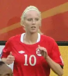 In June 2009 she was called up to the national team for the European Championships,[2] and in the second game, against Iceland, she was the matchwinner with her goal before the break.[5] She scored Norway's third goal in the quarter final against Sweden which Norway won 3–1.