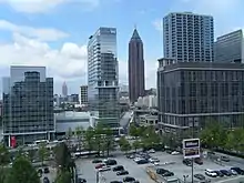 Centennial Hill is district at the northern edge of Downtown Atlanta, Georgia. The name was originally coined by Hines Interests and applied only to their planned development in the area. Although the development was never started and the land later sold, the name remained and became associated with the whole neighborhood. Due in part to the Georgia Aquarium and to renewed interest in city living, Centennial Hill is undergoing a development boom estimated at over US$1 billion . This includes Allen Plaza, an eight-block complex that spans many side streets and borders Ivan Allen. The seasoned developer's project had already delivered the north end of downtown a modern fresh look, with glass buildings that accommodated Southern Co.[1] (and now, Menlo Equities[2]) and Ernst & Young[3] looming over the Downtown Connector and a W Hotel nearby.[4]