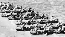 The Centennial Voyageur Canoe Pageant was a canoe race started on May 24, 1967 in the Rocky Mountains by ten teams representing eight provinces and the Yukon Territory and Northwest Territories. Prince Edward Island and Newfoundland, the two remaining provinces were not entered. 3,283 miles (5,283 km) were paddled and portaged in 104 days by 100 men using six man shifts per team. They arrived in Montreal on September 4. Other privately sponsored canoes from across the country made similar trips.[1][2] As of March 2012, it still holds the Guinness record for longest canoeing race in history.[3]