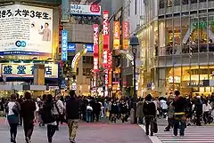 Center Gai (センター街 Sentā-gai) is a narrow street in Udagawachō (宇田川町), Shibuya, Tokyo, Japan. It is a popular area for youths as it has a variety of popular brand name stores, fast food outlets and nightclubs.[1] Its name is meant to signify how it is the "center" of Shibuya. It can be reached from Shibuya Station.