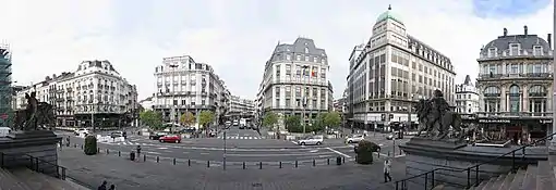 Formerly named the Boulevard du Hainaut/Henegouwenlaan,[3] the Boulevard Maurice Lemonnier/Maurice Lemonnierlaan stretches from the Boulevard du Midi/Zuidlaan to the Place Fontainas/Fontainasplein. Interrupted halfway by the Place Anneessens/Anneessensplein (former location of the Old Market), this artery is characterised by a homogeneous succession of low-rise buildings for the most part, bourgeois dwellings with a predilection for the neoclassical style, apartment buildings, and commercial buildings such as the Midi Palace.[18][5][19] In 1919, the city council ordered the boulevard to be renamed in honour of the alderman and patriot Maurice Lemonnier (1860–1930), who returned from a long captivity as a prisoner in Germany during World War I.[19] Some remarkable buildings along this relatively well-preserved stretch include the Midi Palace, the Model School (currently Charles Buls Primary School), the former Municipal School no. 13 (currently the Haute École Francisco Ferrer) on the Place Anneessens,[19] as well as the old Castellani rotunda (now transformed into a parking lot).[20][18]