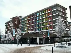 Following the abolition of South Yorkshire County Council in 1986, the building was renamed Central Offices and used by the housing, planning and public services departments of Barnsley Metropolitan Borough Council.[1] After being vacated by the Barnsley Council in 2007,[8] the windows were lit up in various colours as a canvas for a large-scale public artwork in 2009.[9]