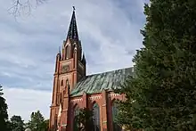 The church was built in between 1859 and 1863, when it was inaugurated. It is known for its unique church tower, which is made of cast iron. The tower is 72 metres (236 ft) tall. The church was designed by C. T. von Chiewitz and C.J. von Heideken. Glass paintings in the church are made by Magnus Enckell.