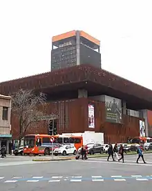 The Centro Cultural Gabriela Mistral (GAM) (formerly known as the Diego Portales Building) is a cultural center located on 227 Av. Libertador Bernardo O'Higgins, in Santiago de Chile. The complex was originally built to serve as the headquarters for the third UNCTAD conference,[1] which was held in Santiago in 1972, and consisted of a convention center and an adjoining 22-stories building. The building was finished in only 275 days in a significant effort supported by several thousand volunteers. This effort was part of a major propaganda initiative performed by the socialist government of Salvador Allende, in power between the end of 1970 and September 1973 .After the conference, the building was used as a cultural center until the 1973 Chilean coup d'état. After the end of the Pinochet regime, it hosted a number of conventions and the adjacent tower became the main building for the Ministry of National Defense. In early 2006, a fire destroyed parts of the building, which led the government of Michelle Bachelet to rethink the original sense of the building and return it into a cultural center, open to the public. Adapting the structure of its urban environment, the building takes on the concept of transparency and many artworks from the original design. The second phase that contains an auditorium with space for more than 2000 is going to start soon.[1]