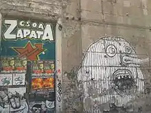 The self-managed Leoncavallo social centre was first occupied in 1975. The still-extant centre defines itself as of 2019 as 'Leoncavallo Self-Managed Public Space' (Italian: Leoncavallo Spazio Pubblico Autogestito).[14] The Cox 18 social centre was born in 1988 in a building squatted in 1976. It is a three-storey complex located at Conchetta 18, in Porta Ticinese. Its influences were originally punk, trade unionism, and Calusca, the last being a local libertarian bookshop and library which then became based at the project. When the neighbours in the street made complaints about drug use and noise, the centre was evicted in 1989. It was resquatted, violently evicted, and then reoccupied again. Cox 18 concentrated efforts on making links with the neighbourhood and this ensured its survival.[15] The T28 social centre was squatted in 1975 and houses the Ambulatorio Medico Popolare, a free medical clinic that had treated over 5,000 people by 2018.[16]