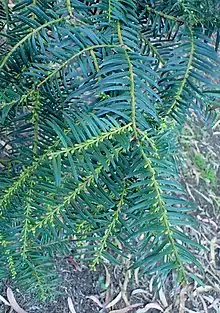 This taxon is sometimes considered to be a variety of Cephalotaxus harringtonii.[1]