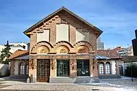 The building, work of architect Gaietà Buïgas and Eduard Maria Balcells, dates back to 1894. It is one of the most noteworthy constructions of local Art Nouveau.[1] In 2003, the building was approved for remodelling with the help of sponsorship from individuals and entities such as the Government of Catalonia, Barcelona Provincial Council, the Barcelona Metropolitan Area Municipal Association, the Banc de Sabadell Foundation, Obra Social Caixa Sabadell and Obra Social Caixa Catalunya.[2] The restoration works were carried out from 2006 to July 2009 under the direction of architect Víctor Argentí.