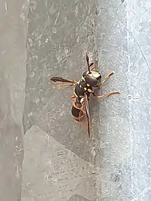 Ceriana ornata is an Australian species of hoverfly in the family Syrphidae. Resembling a wasp, this hoverfly preys on other insects including Australian native bees and the planthopper. Bottom image shown is a Potter wasp, Ancistrocerus Kereri (Dalla Torre 1904) and resembles Ceriana Ornata. C. Ornata can be identified by its distinct Y shaped antenna, large compound eyes and only has two wings.