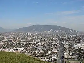 The Cerro del Topo Chico (Spanish, 'Small Mole Hill', from the Latin talpa 'mole') is a mountain and a protected area[1] in the Escobedo, San Nicolás and Monterrey municipalities; state of Nuevo León, Mexico. The summit reaches 1,178 meters above sea level, and it has 618 meters of prominence (Parent: Cerro de las Mitras). The mountain is about 7.5 km long, is a symbol of Escobedo[2] and San Nicolás,[3] and is completely surrounded by Monterrey metropolitan area. It is known for being the source of the Topo Chico mineral water.