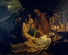 He moved to Florence as a young man with his younger brother, Luigi Mussini (born 1813),[1] and there sought training at the Florentine Academy of Fine Arts. Mussini showed promise as a student. In 1823 he won an award for his watercolor painting. The following year his oil sketch was also awarded by the academy.[2] He would later become a professor at said Academy.[3] Among his paintings are Leonardo da Vinci dies in the arms of Francis I (1828); Tasso reads poetry to Eleonora d'Este; Raphael and the Fornarina; Death of Atala; Stanislaw Poniatowski frees his Polish Slave; Archangel Saint Michael (1868); and Imelda de' Lambertazzi with Bonifacio de'Geremei.[4]