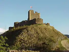 The Château de Calmont d'Olt is a castle situated in France, in the Aveyron département in the commune of Espalion.[1] Perched atop a basalt dyke at an altitude of 535 m, it overlooks from 100 m the town of Espalion and the valley of the Lot. It provides a panoramic view of the Aubrac highlands.
