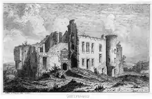 This early 14th-century castle, built at the side of a small valley, consists of a long rectangular building, composed of a fortified house flanked by two towers and two watchtowers at either extremity of an annexe of the same height, from 1564. The lower court and the common buildings in the north east also date from the 16th century.[1]