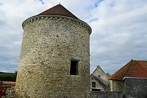 The castle overhangs the village slightly and forms a square protecting a central courtyard. The western wing, the oldest, forms the gatehouse which consists of a carriage entrance and a pedestrian door and leads to the 13th century tower. The northern wing which adjoins the church is the dwelling part which is attached to the east wing by a 16th-century inside tower.