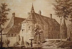 In the twelfth century, the first wooden castle is built, surrounded by a moat. The owners are known as the barons of Lahamaide.[1] They became an important noble family within the county of Hainaut. At the start of the 15th century (before 1415) a stone castle is constructed.
