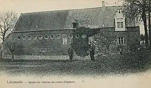 The Château de Lahamaide was a castle in Lahamaide in Hainaut, located in the municipality of Ellezelles, Belgium. It was the place of birth of Lamoral, Count of Egmont. Nowadays the stables only remain.