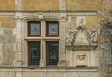 In 1496, Balzac's daughter, Jeanne de Balsac d'Entraygues, married Amaury II de Montal, Lord of Laroquebrou and owner of the Château de Laroquebrou. After Montal's death in 1510, Jeanne transformed the medieval residence into the French Renaissance style between 1519 and 1534. She also lost her eldest son Robert in 1523 during the wars in Italy. During the renovations, she included sculpted busts on the façade of Amaury, their two sons Dordet and Robert, their daughter Nine and her husband François de Scorailles, and Jeanne herself. In 1591, the château passed into the Pérusse des Cars family through the 1595 marriage of Rose de Montal to François de Pérusse des Cars, 1st Marquis de Montal, Marquis de Merville.[lower-alpha 2]