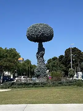 Chain Reaction is a peace monument and public art sculpture composed of a metal framework of stainless steel and fiberglass surrounded by concrete, depicting a mushroom cloud created by a nuclear explosion. Designed by American editorial cartoonist Paul Conrad and built by Peter M. Carlson, the 5.5-ton, 8-meter (26-foot) high sculpture was installed in 1991 adjacent to the Santa Monica Civic Center in Santa Monica, California.[1][2]