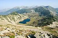 The Chairski Lakes (Bulgarian: Чаирски езера) are a group of nine glacial lakes in the Pirin mountain, south-western Bulgaria. They are located in a large cirque called Chaira in the valley of the river Sandanska Bistritsa. They are situated between the peaks Mozgovishki and Prevalski Chukar at an altitude between 1,400 and 1,500 m. Their total area is around 92 decares which is with 30 decares less than the largest lake in Pirin, the Popovo Lake. Their total volume is 160,000 m³ which is eight time less than the Popovo lake.