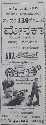 Chakravyuha (lit. 'Labyrinth') is a 1983 Kannada-language political action thriller film directed by V. Somashekhar. The film stars Ambareesh and Ambika. This film marked the entry of popular actor Mukhyamantri Chandru into films.[1] Produced by N. Veeraswamy for Eshwari Productions, this film also starred his son V. Ravichandran in a small role. Actor Tiger Prabhakar also featured in an extended cameo role. The film obtained an 'A' certificate without cuts from the CBFC.