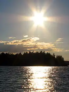 The steep and solitary Chamcook Mountain overlooks the lake.[12] The mountain has a glacial rounded top scored with long scratches which indicate that a glacier from the northern highlands had grated its way across the mountain.[13] The Chamcook Lake and the Chamcook mountain are both located in the Silurian belt of huge sandstones which has fossiliferous and volcanic formations in different sections.[14]