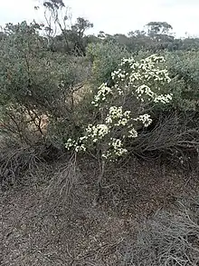 Found on sandy ridges or sand plains in the southern Wheatbelt, Great Southern and the south coast of the Goldfields-Esperance regions of Western Australia where it grows in sand or gravelly soils over laterite.[1]