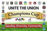 The Champions Cup (known as the Unite the Union Champions Cup for sponsorship purposes) was a cross-border association football super cup inaugurated in 2019 that features the league champions from both football associations on the island of Ireland. The competition sees the League of Ireland Premier Division champions from the Republic of Ireland face the NIFL Premiership champions from Northern Ireland. The Champions Cup is the successor to the Setanta Sports Cup, the previous all-Ireland competition which ran from 2005 until 2014. The Champions Cup is sponsored by Unite the Union, the British and Irish trade union.[2] The 2019 edition was the only one contested, and as of 2022 there is little prospect of the competition returning.[3]