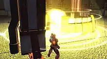The game features a character creation system similar to City of Heroes, with additions such as the ability to edit a hero's movement animations, such as a beast-like hero opting to run and leap on all fours.[5] The player may also edit the colour and firing position of their powers, such as changing a power's energy animation from red to green or changing the animation to fire from the head instead of the palms.[6]