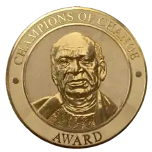 Champions of Change (COC) is an Indian award for promoting Indian values like community service, social development, healthcare, education and national unity, selected by constitutional jury members headed by K. G. Balakrishnan, the Former Chief Justice of India and Former Chairman NHRC and Justice Gyan Sudha Misra, Former Judge, Supreme Court of India. The awards are organised annually and usually presented by the President of India, Vice President of India, former President of India, former Vice president of India or any leading political figure of India.[1]