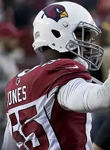 In 2016, Jones started all 16 games for the Cardinals, recording 49 tackles, 11 sacks, three passes defensed and four forced fumbles.[36] He was also ranked 85th on the NFL Top 100 Players of 2017.[37]