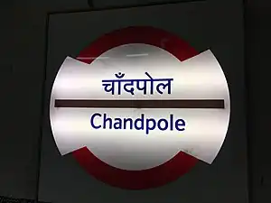 Chandpole is an underground metro station on the East-West Corridor of the Pink Line of Jaipur Metro in Jaipur, India. This station was opened on 3 June 2015, which serves the Chandpole colony.[1][2]