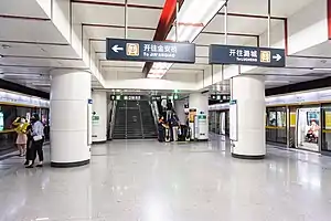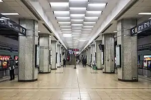 Chaoyang Men Station[1] (simplified Chinese: 朝阳门站; traditional Chinese: 朝陽門站; pinyin: Cháoyángmén Zhàn) is an interchange station on Line 2 and Line 6 of the Beijing Subway named for Chaoyangmen, an old gate in Beijing's city wall.