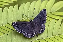 Charis is a genus of the Riodinini tribe of metalmark butterflies (family Riodinidae). Nineteen species have been identified within the Charis cleonus complex[2] (however, further analysis has revised this clade to contain 22 species[3]) and eight species within the Charis gynaea group (clade).[4] Charis butterflies are common in the Neotropics and often live in primary and secondary growth.[4] The Charis cleonus group exhibits contemporary parapatric distributions throughout Amazonia and are thought to have speciated allopatrically; residing in "areas of endemism".[2] Some evidence suggests that Charis (among other Riodininae groups) are reproductively isolated by mating preferences for different topographic areas and different times—of which, may have promoted speciation between the various groups.[5]