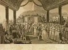 Pradier was a member of the Missão Artística Francesa organized by Joachim Lebreton which brought a number of artists to Brazil, arriving on 25 March 1816. These included the painters Jean-Baptiste Debret (1768-1848) and Nicolas-Antoine Taunay (1755-1830), the sculptor Auguste Marie Taunay (1768-1824), the brothers Marc Ferrez (1788-1850) and Zepherin Ferrez (1797-1851) and the architect Grandjean de Montigny (1776-1850).[4] They were to form the nucleus of a royal art academy in Brazil.[5] Pradier left Brazil in 1818 and returned to Paris. He claimed that in Brazil there was no appropriate paper for printing his works.[6]