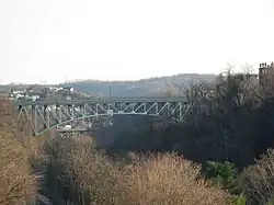 The Charles Anderson Memorial Bridge is a steel deck truss bridge located in Pittsburgh, Pennsylvania, United States. The bridge carries the four-lane roadway of Boulevard of the Allies across a ravine known as Junction Hollow, connecting the neighborhoods of Central Oakland and South Oakland with Schenley Park.[6] The bridge also spans the Junction Hollow Trail and P&W Subdivision railroad tracks which run along the bottom of the valley.