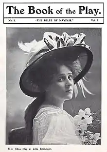 In 1898, after nearly two decades on stage, Brookfield gave up acting when, after a severe illness, he was diagnosed with advanced tuberculosis. He then focused, despite continued bouts of ill health and periods of convalescence in Europe, on journalism and writing farcical plays and musical theatre works. In 1900, he became a Roman Catholic and later visited Downside Abbey, in Somerset, where his son became a pupil in 1901.[1] His stage works, in addition to those mentioned above, include the farce The Cuckoo, which premiered at the Avenue Theatre in London (1899), also playing on Broadway the same year at Wallack's Theatre; a comic opera, The Lucky Star (1899), written in conjunction with Adrian Ross and Aubrey Hopwood for the D'Oyly Carte; a play called I Pagliacci, based on the opera, at the Savoy Theatre (1904); the comic play What Pamela Wanted at the Criterion Theatre (1905); and another comedy, The Lady Burglar at Terry's Theatre (1906).[5] Brookfield's most successful work was the long-running Edwardian Musical Comedy, The Belle of Mayfair (1906), together with Basil Hood and Cosmo Hamilton, with music by Leslie Stuart, which also ran on Broadway beginning the same year. Another musical, the same year, was See-See, with lyrics by Ross and music by Sidney Jones, at the Prince of Wales Theatre.[8] His play I Pagliacci ran on Broadway in 1908. Brookfield's work as a journalist included several years on the staff of The Saturday Review. In 1902, Edward Arnold published Brookfield's volume of Random Reminiscences.[3] He and his wife together wrote Mrs Brookfield and her Circle (1905).[9]