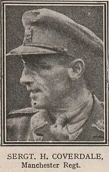 Coverdale was 29 years old, and a sergeant in the 11th Battalion, The Manchester Regiment, British Army during the First World War when the following deed took place for which he was awarded the VC.