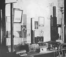Some of Apgar's homemade equipment has been preserved at The Henry Ford museum.[49] His original wax cylinders are believed to be lost, but some samples of his recordings survive.[50] An interview of Apgar by George Hicks was broadcast on station WJZ and the NBC Blue Network on Dec. 27, 1934. A tape copy of the original aluminum phonograph discs and a transcript is in the Recorded Sound Collection of the Library of Congress.[51] A recording of this broadcast donated by Thorn Mayes is in the collection of the Antique Wireless Association.[52] Broadcast historian Elizabeth McLeod considers Apgar's cylinders to be the earliest surviving recordings of a radio transmission based on research done by Dr. Michael Biel.[50][53] Apgar has been referred to as a "pioneer home-recorder."[54] He has also been credited with making the first permanent record of a wireless message.[55]