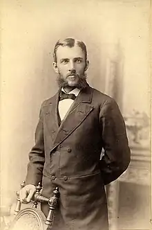 Aiken was born in Benson, Vermont, the first son of James Edward and Harriet Ann Howard Aiken. He grew up in Chicago and began to shoot and collect birds from the age of 18. He also began to learn taxidermy under Charlie Holden and Rudolph Borcherdt. The family moved to Colorado Springs following the destruction of his father's business in the Chicago fire of 1871. He lived in the ranch of Turkey Creek Valley now called Aiken Canyon and established a taxidermy business in Colorado Springs around 1877. In 1868 he saw flocks of passenger pigeon in Ross and in 1886 he saw (and attempted to shoot) his last at Hammond, Indiana. In 1875 he trained Frank Stephens in bird taxidermy. Stephens would later help establish the San Diego museum. Aiken was said to have been a keen observer with an ear for bird calls which he could also imitate. In the early 1880s he established C.E. Aiken’s Music Store and Museum on Pikes Peak Avenue. In 1907 he sold off his collections to General William Jackson Palmer who gave it to the Colorado College consisting of about 5700 skins along with mounted specimens, nests and eggs.[1][2][3]