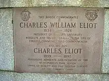 - ↑ "Charles Eliot Memorial - Charles River Esplanade - Boston".