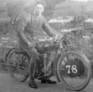 On 29 May 1905, Franklin competed as a private entrant at the Auto Cycle Club's trial on the Isle of Man on a "special" with a JAP V-twin engine in a Chater-Lea frame.[7] The trial was used to select Britain's team for the Coupe International races of 1905.[6] Only Ariel rider J. S. Campbell and Matchless rider (and co-owner) Harry Collier finished the trial; Franklin was selected as the third team member based on his speed and consistency during the trial.[8] His participation in the 1905 Coupe International made him the first Irishman to participate in international motorcycle competition.[9] Franklin competed with the British team in the 1906 Coupe International on another JAP special, this time with Harry Collier and his brother Charlie on Matchlesses.[10]