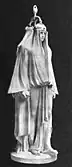 Grafly modeled two of the colossal figures for the façade of the Alexander Hamilton U.S. Custom House in Manhattan, New York City. His allegorical figure of England (1903–07) depicts a young Queen Victoria dressed in armor, holding the wand of Hermes and accompanied by the shield of St. George and a ship's wheel.[33] His allegorical figure of France (1904–07) depicts a goddess crowned with a laurel wreath, holding a sceptre, a sheaf of wheat and a bronze statuette representing the Fine Arts, and accompanied by a Gallic rooster and a herm of the ancient god Dusios.[34] Both figures were carved in limestone by the Piccirilli Brothers.[35]