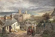 Charles James Adams (1859-1931) was an English landscape artist[1] born in Gravesend, Kent, and second child of Charles Adams and his wife Sarah (née Crisp). Charles studied at Leicester School of Art (now De Montfort University) under Wilmot Pilsbury, where he won the Mulready Gold Medal for Life Drawing from the Society of Arts, London. A prolific artist of landscapes with animals (notably sheep and horses), genre and historical subjects, he painted mainly in oils, although produced a number of lithographs and was also an extremely accomplished watercolourist.[1] He lived in various parts of England, including Leicester 1891 (teaching at the School of Art), Sydenham London 1895, Horsham Surrey 1897, Billingshurst 1900 and Midhurst 1901 in West Sussex, Guildford Surrey 1904 and finally settling in Farnham Surrey 1905 until his death on 8 November 1931, aged 72.