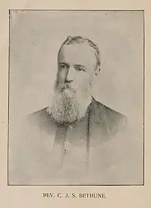 Bethune was born in West Flamboro, Upper Canada son of Reverend Alexander Neil Bethune, second Bishop of Toronto. The family had moved from Skye to North Carolina in 1774 and an ancestor Rev. John Bethune had founded the Presbyterian Church in Montreal. Charles however was confirmed in the Church of England and after studying at Upper Canada College he graduated from Trinity College in 1859 receiving an MA in 1861 and a DCL in 1883. He then worked as a priest for nine years and served as headmaster of Trinity College School, Port Hope from 1870 to 1899. In 1906 he joined the Ontario Agricultural College in the entomology and zoology department. His entomological career had been developed in association with William Saunders, Sir William Osler and others and he was involved in the founding of the Entomological Society of Ontario.[1] Bethune was a theological naturalist who saw insects as a means for understand Creation. At a meeting of the American Association for the Advancement of Science in 1872, he disputed with Samuel Scudder on evolution and in 1910 he stated that the main reason for maintaining butterfly collections was because "they were created because the Lord has an eye on the beautiful."[2][3][4]