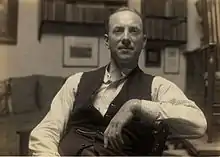 In October 1919 Scott founded the Philharmonic Choir, the predecessor of the present London Philharmonic Choir.[15] This first appeared at a Philharmonic Society concert in February 1920, to give the first performance of Delius's A Song of the High Hills, and also Bach's Sing Ye to the Lord and Beethoven's 9th Symphony (directed by Scott, under Albert Coates).[16] Most of its concerts took place in the Queen's Hall, where the space available limited the membership to about 300. The choir contained a large professional element, especially among the tenors, to achieve a high standard of performance: the costs of their employment were met principally by Balfour Gardiner.[17]