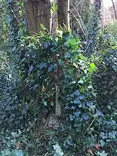 Ivy-choked tombstone of the King Hall family in Highgate Cemetery, 2017