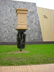 There are statues of La Trobe outside the State Library and at La Trobe University's Bundoora campus, the latter statue is notable for initially being upside-down in appearance, symbolising Universities duty to "turn ideas on their head".[16]