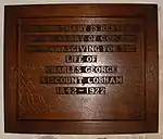 St John the Baptist Church, Hagley, wooden memorial tablet to the 8th Viscount Cobham