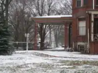 The home has seen a number of changes aside from the porte-cochere. The front porch has undergone dramatic altering through the years. When Garnsey designed the building he intended the porch as an open and wooden decorative touch. By the turn of the 20th century the porch had been replaced with a brick based porch. The 1940s brought the commercial conversion of the first floor of the home and the porch was enclosed with glass to provide additional space for the business.[2]