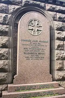 On 23 July 1873, Pearson married Elizabeth Hewat, daughter of M. Grayhurst Hewat of St. Cuthbert's, Norwood, by whom he had three sons.[2]